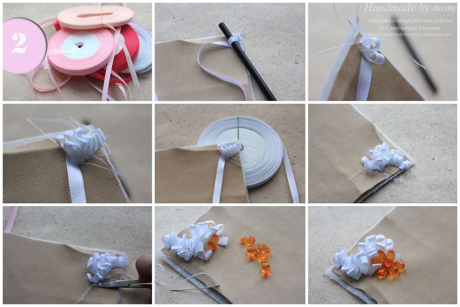 2. Репсовые кораллы и из бусин, ленточку тут использую 6 мм, нашиваю в хаотичном порядке, если удобно для размера можно взять карандаш или ручку. Я нашивала как попало. Добавила бусинки капельки, получился такой твердый рельефный коралл.