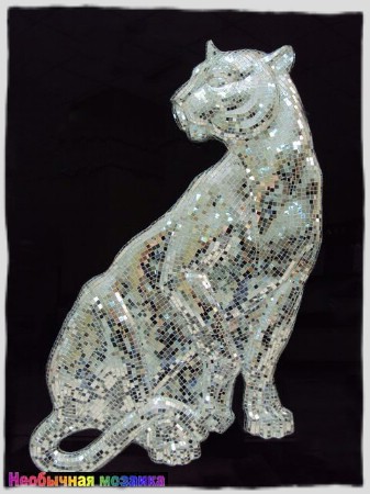 Работайте обязательно в перчатках, чтобы не порезать руки острыми гранями зеркала. Когда узор собран, надо заполнить швы акриловой затиркой. После окончания работы, протереть мозаику тряпочкой.