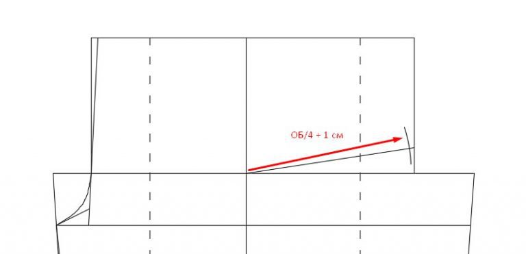 Отвод по линии талии 1 см к линии бока. Только для тянущихся тканей! Прямая через отвод, точку на линии бедра, и продлить до линии высота сиденья.