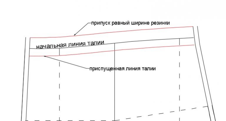 Опустила линию талии на 2 см. От новой талии вверх откладываю ширину резинки, которую буду пришивать, здесь 5 см. Красные линии на рисунке. [x413]/www.rudenko-anna.ru/wp-content/uploads/2017/07/Screenshot_22-300x161.jpg" target="_blank">http://www.rudenko-anna.ru/wp-content/uploads/2017/07/Screenshot_22-300x161.jpg 300w, http://www.rudenko-anna.ru/wp-content/uploads/2017/07/Screenshot_22-768x412.jpg 768w" width="770" /> |