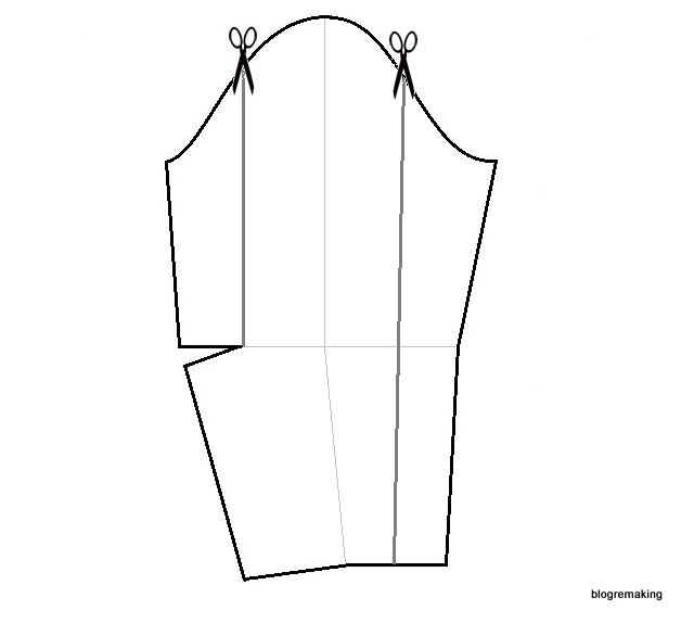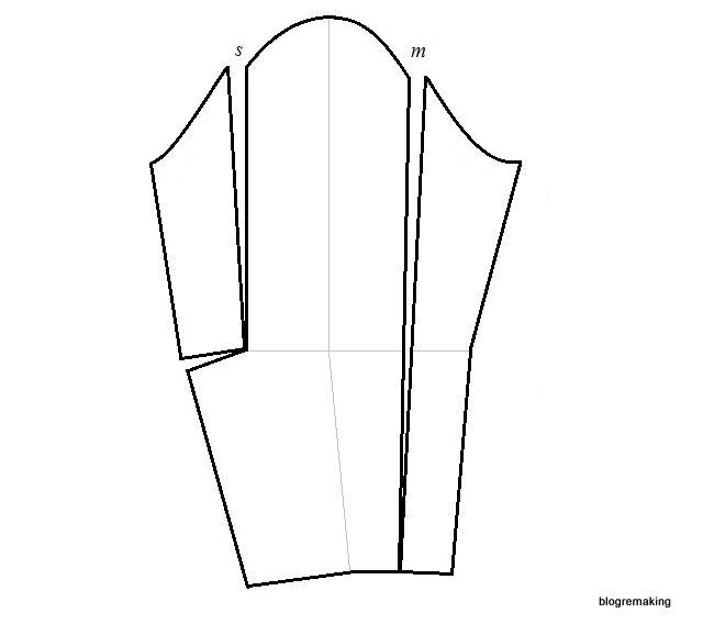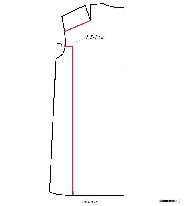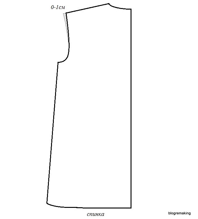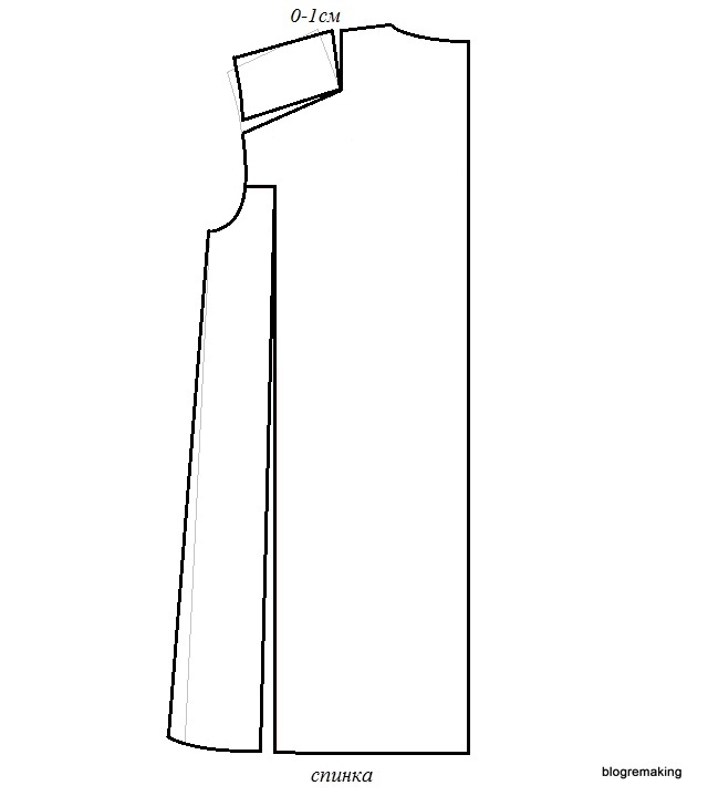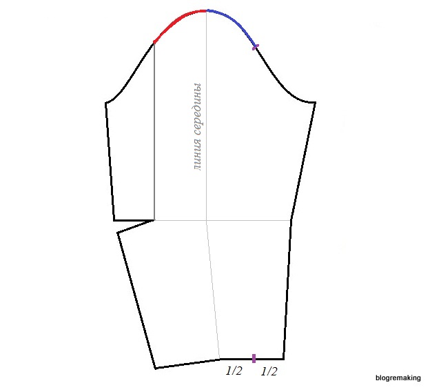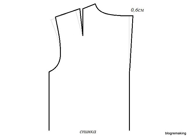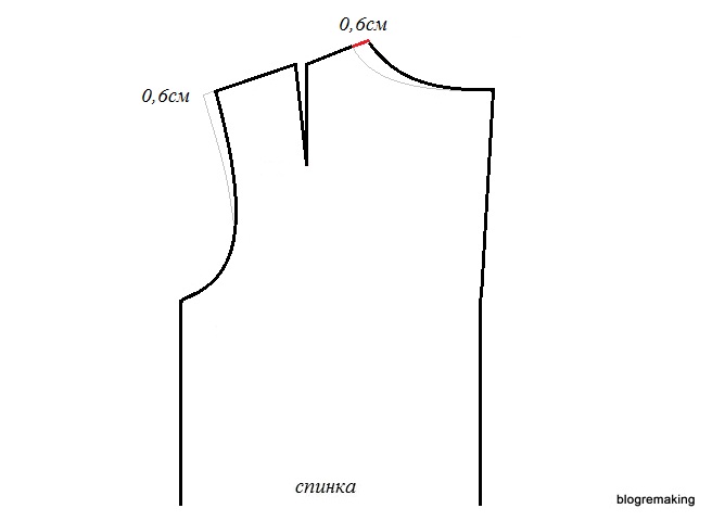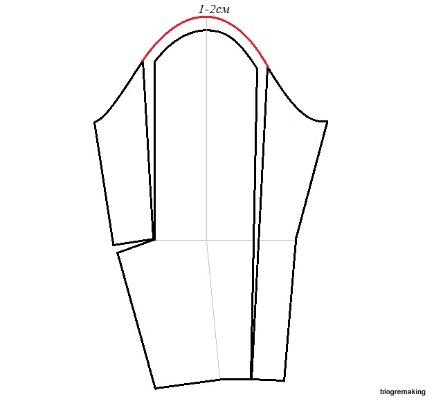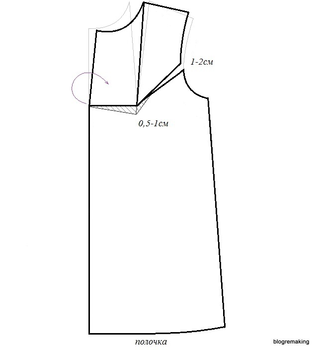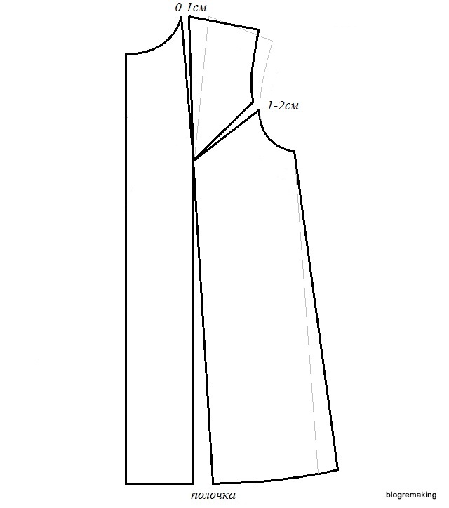 в линию плеча — на такую же величину как на полочке, для того чтобы сохранить посадку (до 1см)