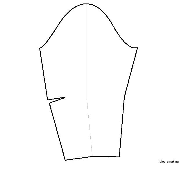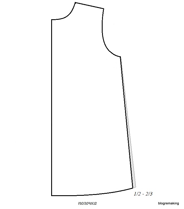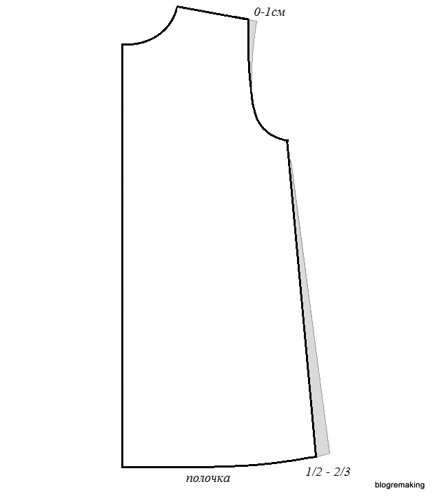 Расширение полочки по линии низа также можно сократить, убрав половину или 2/3 этого расширения с бокового среза.
