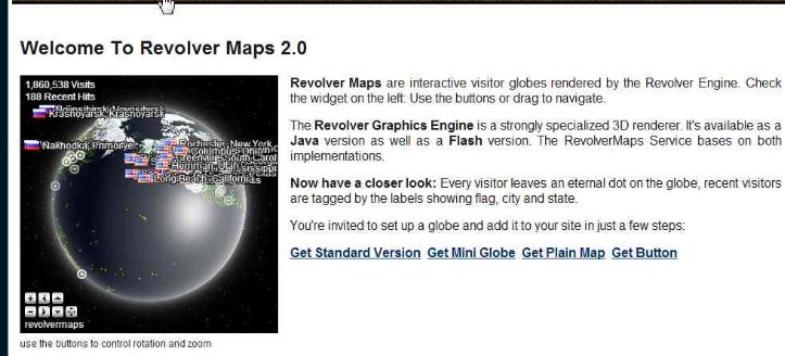 Наберите в адресной строке браузера "http://www.revolvermaps.com/". Откроется главная страница, на которой присутствует информация о данном сервисе