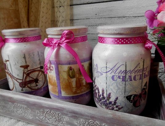 Техника декупаж дает тебе возможность при минимальных затратах сил и времени делать потрясающие вещи. Такие баночки замечательно впишутся в любой интерьер. Кроме того, хранить разнообразные вещи и продукты в таких красавицах гораздо приятнее. http://feel-feed.ru