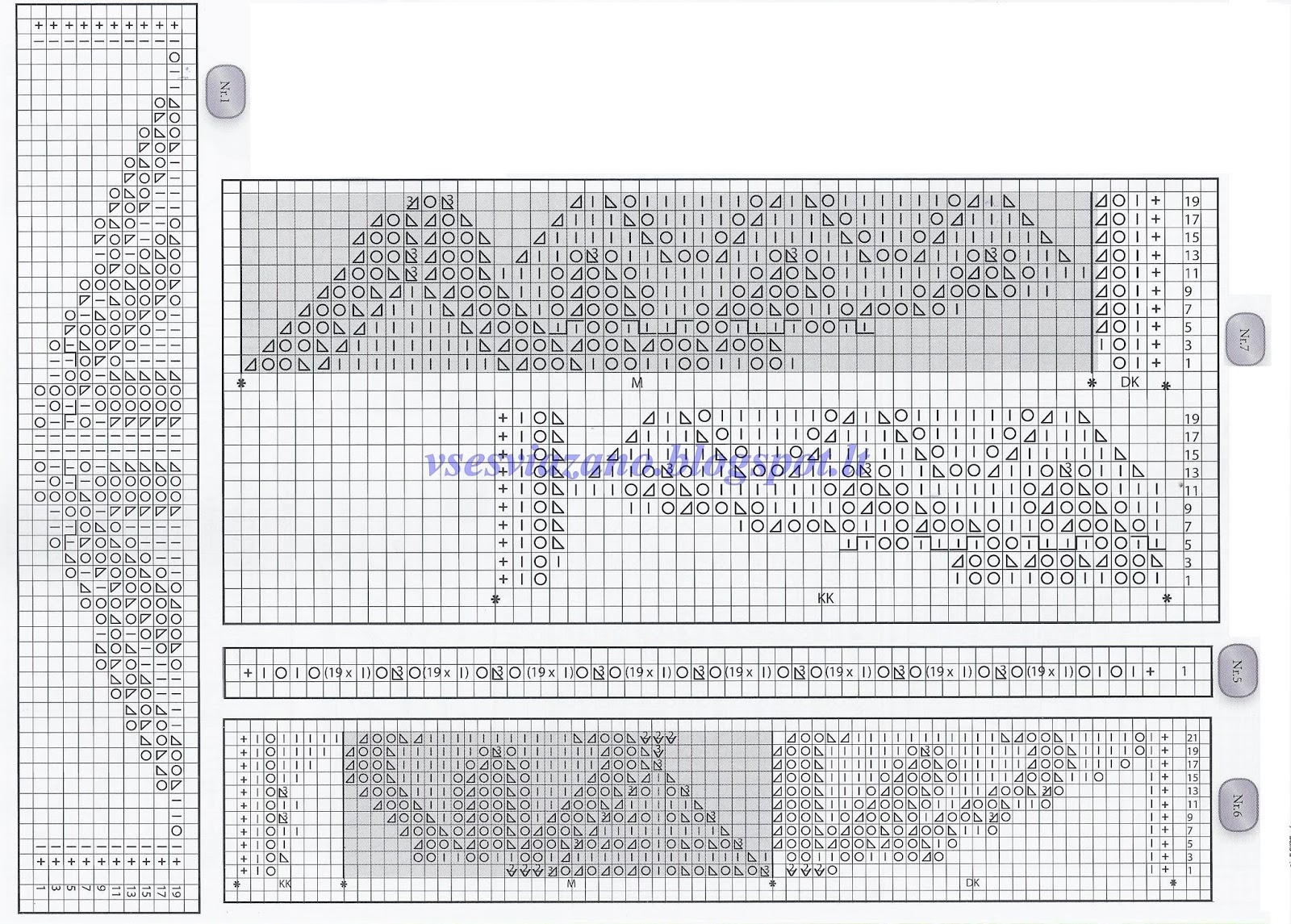 4. Провяжите 22 ряда по схеме Nr.6: правый край - 8 раз повторите мотив,