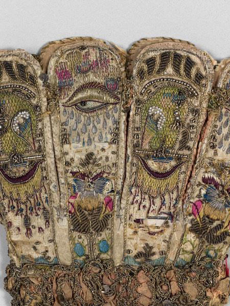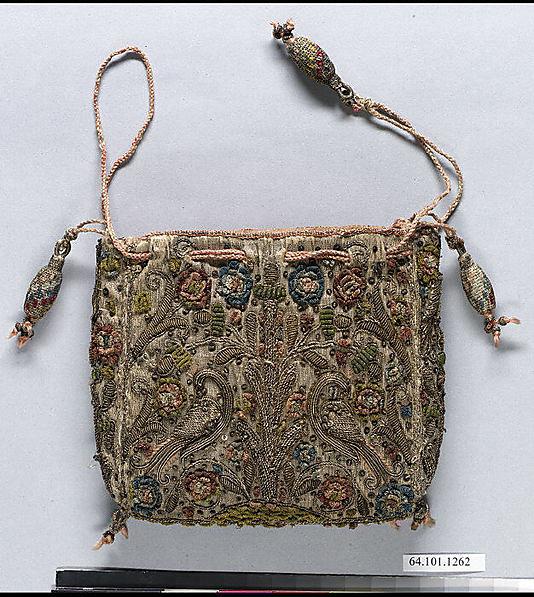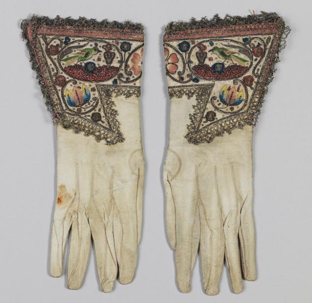 Чаще всего вышивкой украшали головные уборы, носовые платочки, маленькие сумочки и кошельки. Такие сумочки использовали для хранения ароматных трав и духов и как роскошную упаковку для подарков. Но самым популярным предметом одежды с вышивкой были перчатки. Они ассоциировались с романтической привязанностью, могли служить знаком любви, который преподносили второй половине, например, в день помолвки, как в наши дни дарят кольцо. Поэтому на них изображали такие традиционные символы любви, как сердце.