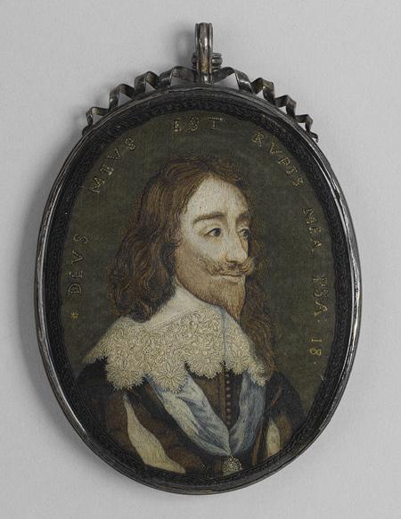 Портерт Карла I, приблизительно 1650-1670 г. Вышивка шелковыми и золотыми нитями.