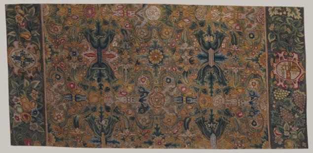 Середина XVII века. Вышивка шелковыми и золотыми нитями по льну.