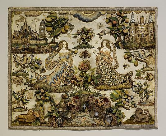 В XVI и XVII веке искусство светской вышивки расцвело в Европе, особенно в Англии. Еще в Средние века английские мастера, вышивавшие церковное облачение, славились по всей Европе. Когда же король Генрих VIII порвал с католической церковью в 1534 году и учредил собственную церковь, нужда в расшитой богатой одежде для священников и убранстве соборов значительно сократилась. А вот спрос на вышитую светскую одежду и домашний декор возрос, поскольку люди могли себе позволить такую роскошь в относительно спокойные и богатые времена правления Елизаветы.