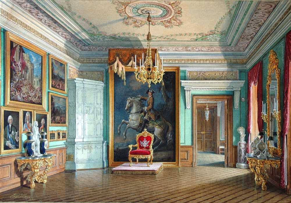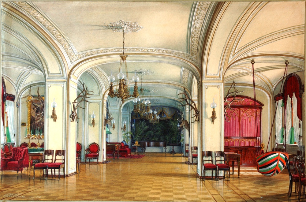 Хотя семья Александра II не слишком часто приезжала в Гатчину, именно этот император пригласил художника Э.П. Гау запечатлеть все имеющие художественное или историческое значение интерьеры здания.
