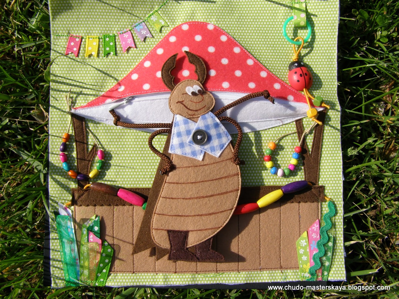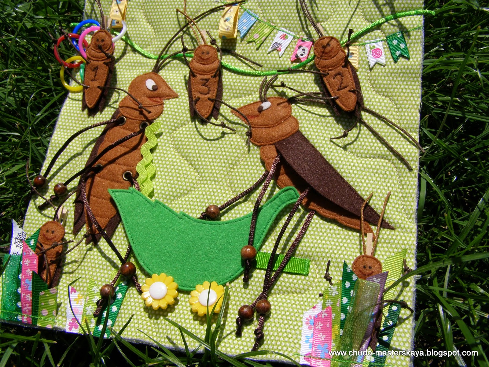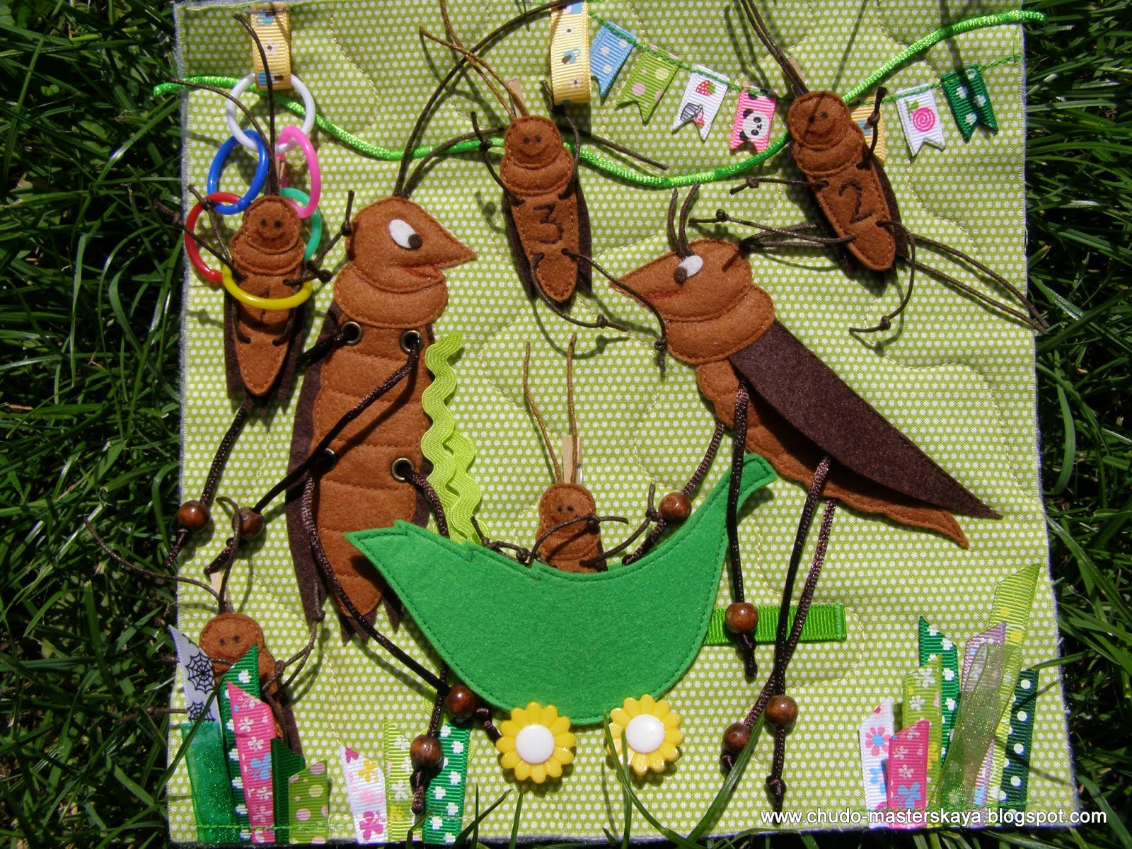 И жестикулировать мы будем вовсю, благодаря такому приему в развивающих игрушках как перетягивалка, именно таким образом я изобразила лапки таракашек. Детям очень нравятся разные "дергалки", а здесь их так много! Даже родители могут оторваться, если есть плохие воспоминания от студенческих общежитий например:)