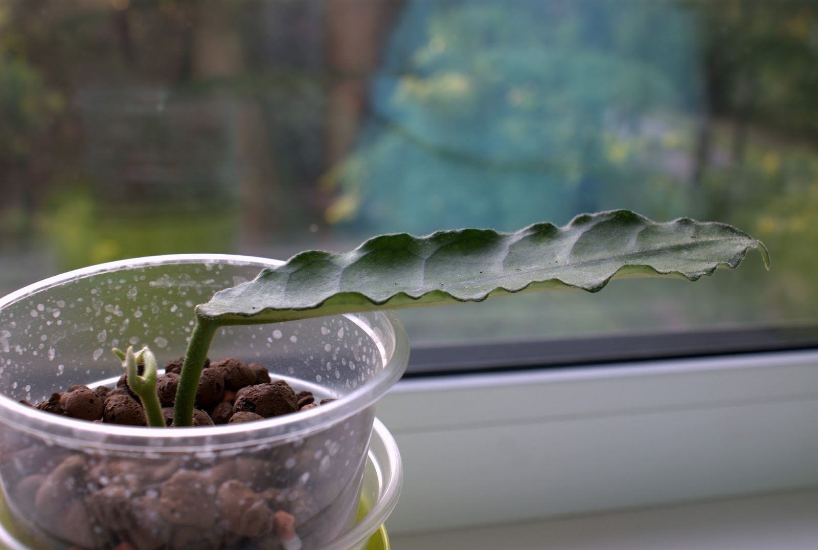 6.06.2015 - процесс пошёл, жду, долго зрел этот побег, пока сформировалось нечто похожее на лист. Жду с замиранием сердца, хочется уже пучок таких листиков!)