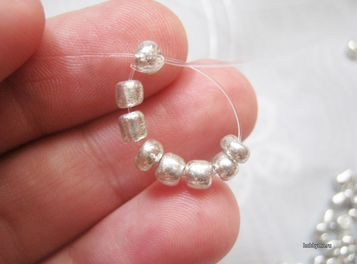 1) Возьмите леску длиной примерно 1 м и закрепите первую бусинку