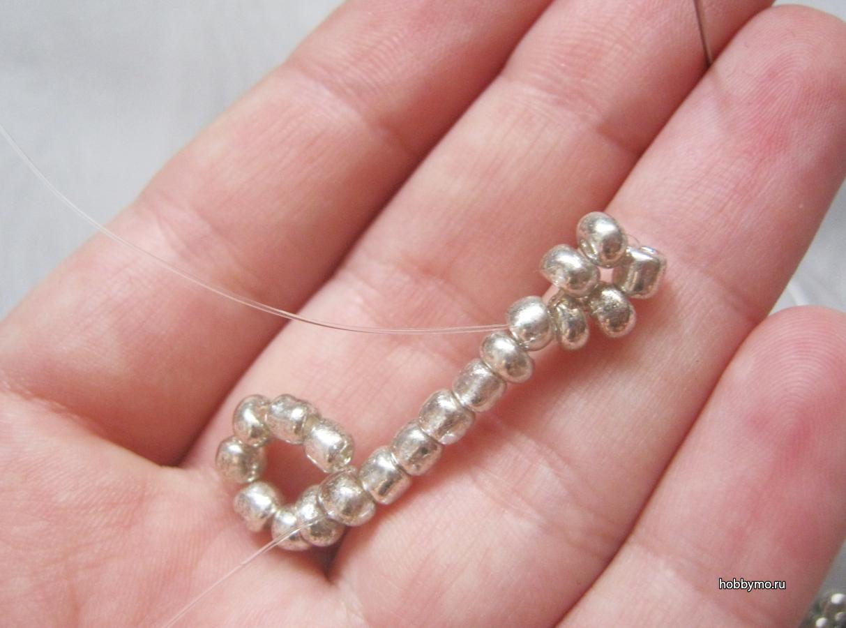 3) Нанижите 11 бусин и пройдите через шестую бусину