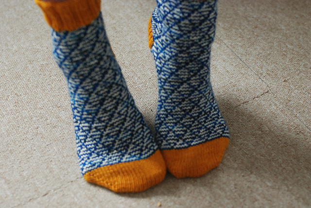 С первым носком я довольно долго провозилась, три раза перевязывала пятку. Второй связала быстро. Хорошо избавляться от остатков ниток и вязать такого типа носочки! )