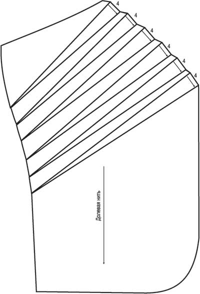 Разрезать деталь запаха по линиям моделирования, на чертеже выкройки. Раздвинуть детали на расстояние 4 см друг от друга по внешнему краю.