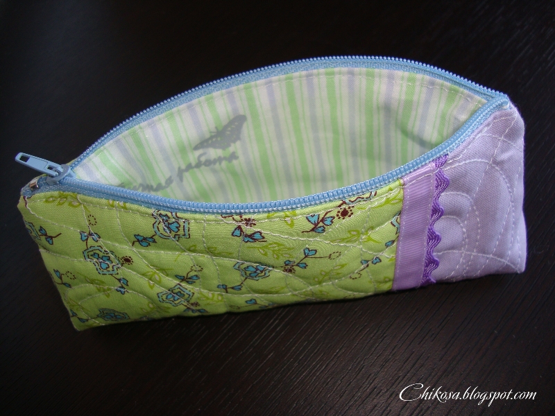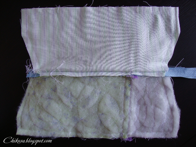 5. Прижим лапки 0, натяжение нити на 0,5. Простегиваем в свободном стиле верх и "утеплитель", поворачивая ткань: