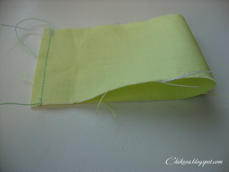 15. Собираем руками складки (на больших косметичках я такой цветок шью на машинке - длина строчки 5, потом вытягиваю одну нить):