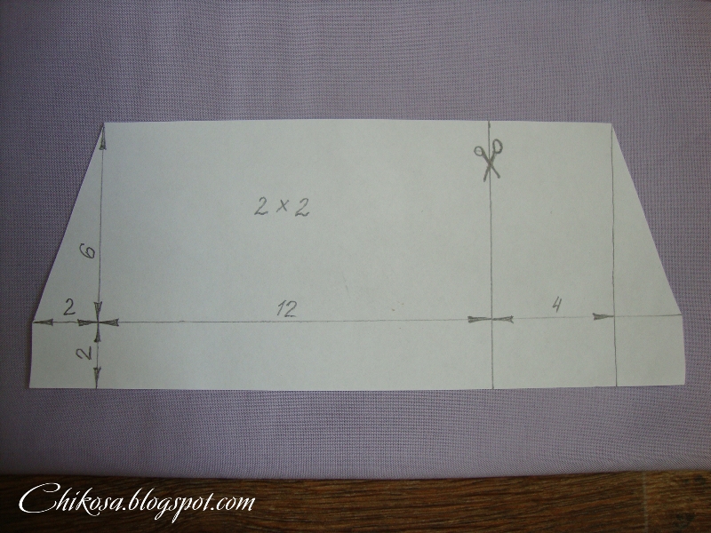 2. Выкройка сумочки, размеры в сантиметрах. Где нарисованы ножнички - в этом месте я сделала разделение по цвету: