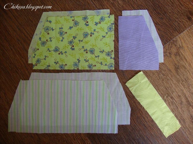 3. Выкраиваем две детали для верха, две для подклада. Полоску размером 4 см на 15 см для цветочка: