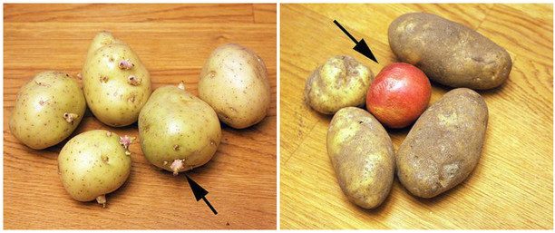 Храните картофель, добавив в сетку или коробку одно яблоко. Так он не будет прорастать. А вот рядом лук вместе с картофелем лучше не хранить. Так овощи испортятся быстрее.