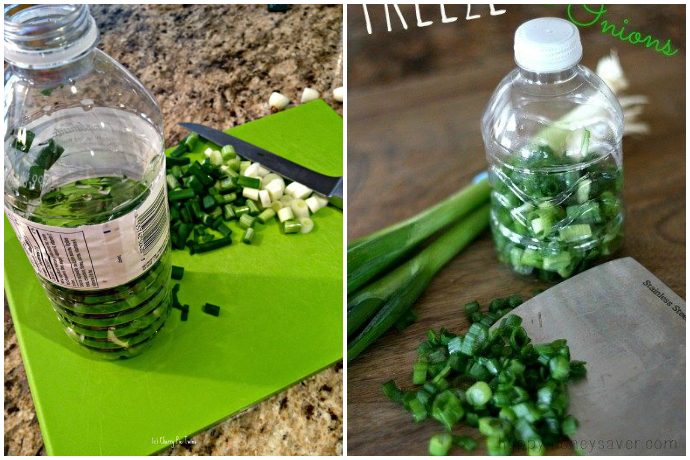 Остатки порезанного зеленого лука можно заморозить в пластиковой бутылке.