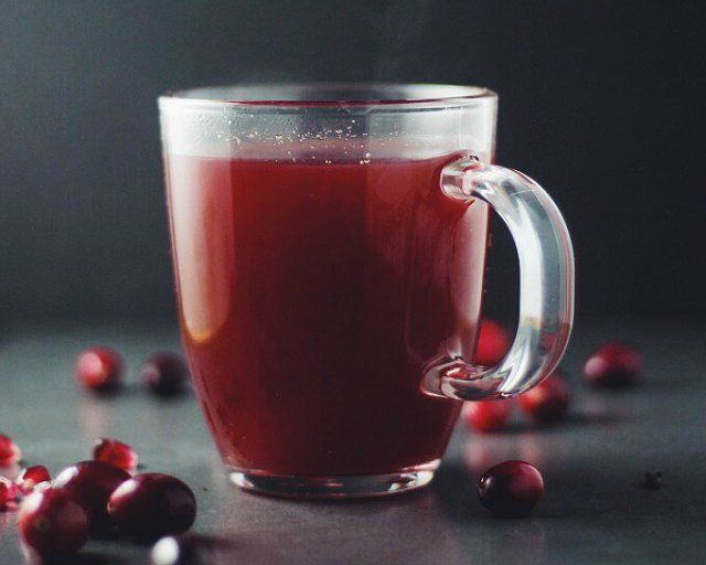 Вам понадобятся: 400 мл яблочного сока, 300 мл гранатового сока, 300 мл клюквенного сока, 1 палочка корицы, 3 бутона гвоздики.