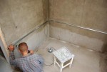 2. Проводится разметка, по которой будет уложена керамическая плитка. От уровня чистового пола отмеряют 70 – 75 см и проводят линию карандашом с помощью строительного уровня. Эта линия — нижний край первого ряда керамической плитки.