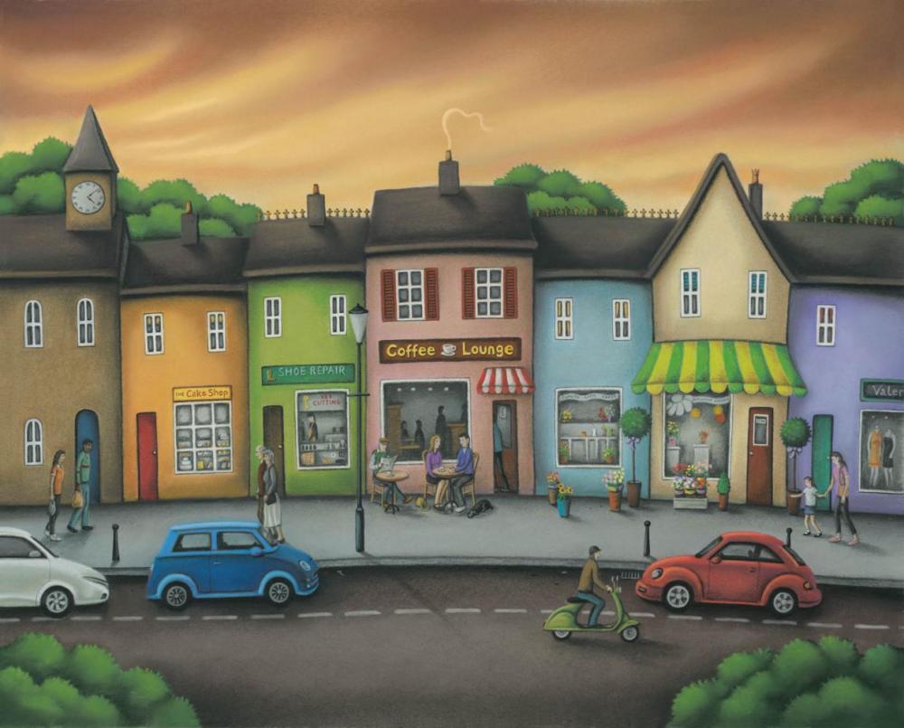 Мои отличительные картин навеяны любовью к цвету, под влиянием таких художников, как Дега, за его чудесные пастельные исследований и отличное чувство композиции и Шагала, который создал свой собственный мир мифов и магии, опираясь на свой собственный воспоминания и опыт, который является то, что я люблю делать своей работой. К середине восьмидесятых я был в поисках новых вдохновений и необычный предмет для рисования. Я посетил кукольный театр в Арт-центре Midland и дали доступ на склад кукол и марионеток в подвале. Что я нашел выложил передо мной мир был потерян во времени, скрытый под облаком пыли. Я чувствовал, что я был дан ключ от волшебного королевства и моей целью было привести этот мир к жизни. В первых картинах я произвел марионетки все-таки имели свои строки, только позже я смог освободить их из неволи, создавая свой собственный ассортимент символов и зачатки мир, который вы видите сегодня.