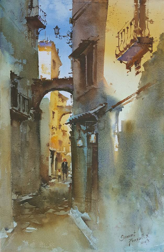 Prafull Sawant уже давно считается одним из ведущих художников реалистов в Индии. Он одаренный художник- акварелист, который считает, что важно работать на открытом воздухе, на месте, и как можно больше. Рвботая в Индии, он создает волшебное настроение в акварелях.