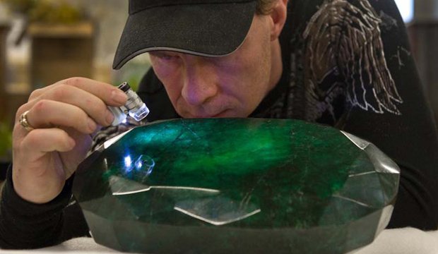 "Безусловно, это – изумруд, однако каково его точное количество в камне – определить не представляется возможным, – говорит геммолог. – Поскольку он имеет неоднородный цвет, то, как минимум, одна четвёртая объёма может являться белым бериллом – минералом, который является прародителем изумруда. Очень хорошо окрашенная поверхность камня вовсе не свидетельствует о том, что зелёный цвет распространяется на всю глубину. Кроме того, величина камня, имеющего насыщенный цвет, не позволяет измерить его прозрачность. Я думаю, как о драгоценности, можно говорить не о целом камне, а об изумрудной прослойке, толщина которой варьируется в пределах 3-5 сантиметров".