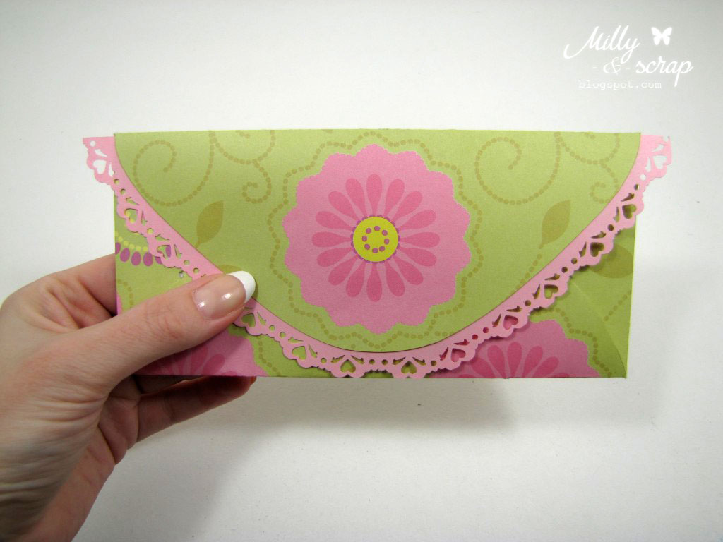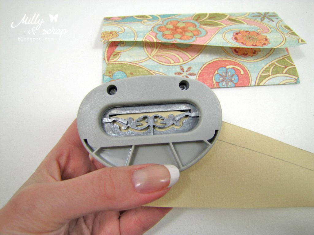 В этом варианте конверта край несимметричный, поэтому и дыроколить я начинаю сначала.