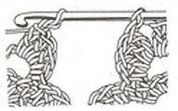 Часто узорчатое полотно выполняется из отдельных мотивов, которые соединяются между собой. Их можно сшить, но можно соединить в процессе вязания последнего ряда каждого последующего мотива. Довязав до места соединения с предыдущим мотивом, не вынимать крючок из рабочей петли присоединяемого мотива. Ввести крючок в петлю готового мотива, рабочую петлю на крючке слегка затянуть и. захватывая рабочую нить. протянуть ее через обе петли. Оба мотива соединены, незаконченный мотив вяжется дальше. Если в месте соединения есть цепочка из воздушных петель, то вяжется часть цепочки до зацепа, выполняется зацеп, после чего заканчивается цепочка. Например, для цепочки из 3-х петель нужно связать 1 в. п., выполнить зацеп, связать еще 1 в. п.