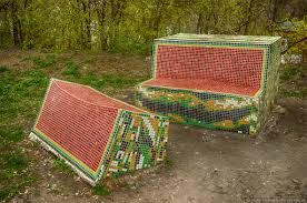 Именные лавочки с табличками в честь тех, кто дал деньги на них.Можно сесть так и сяк, и даже прилечь :