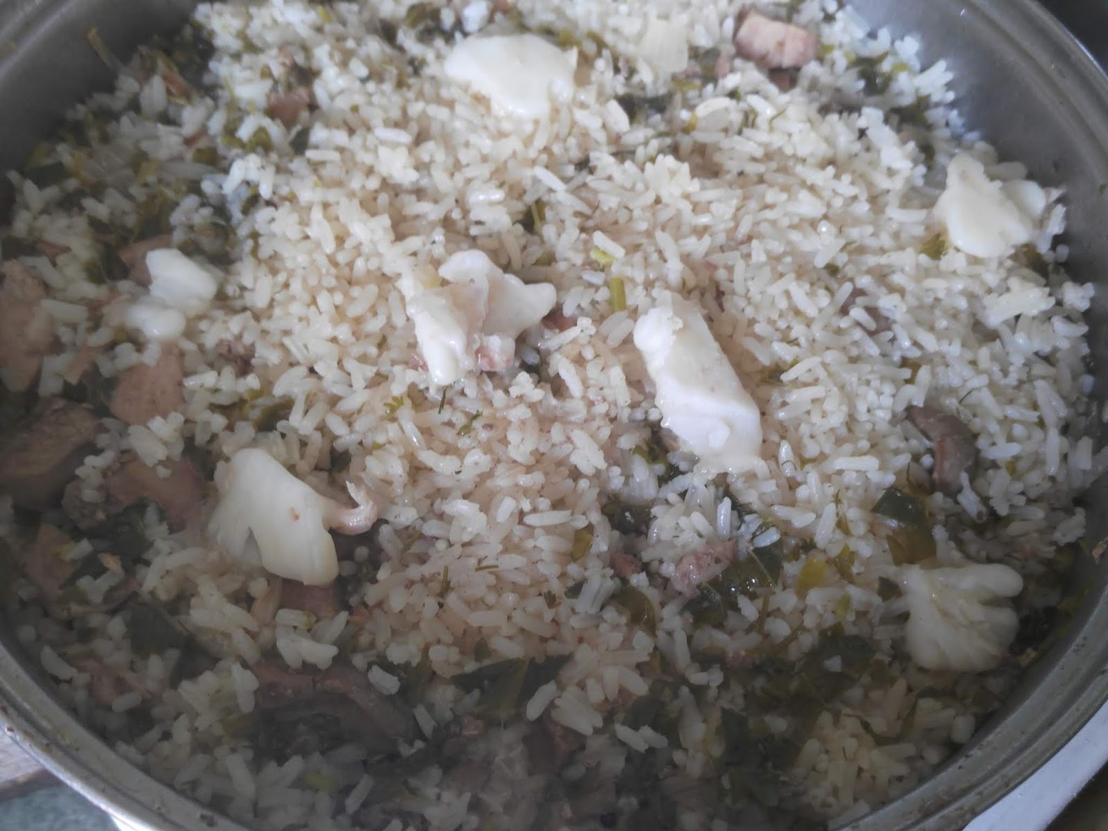 После этого по поверхности риса раскладываем кусочки масла (у меня смалец)