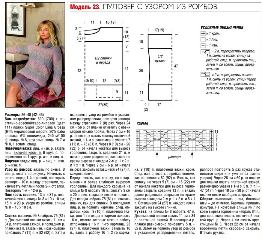 Дневник Пуловер с узором из ромбов | Gania - Дневник Gania |