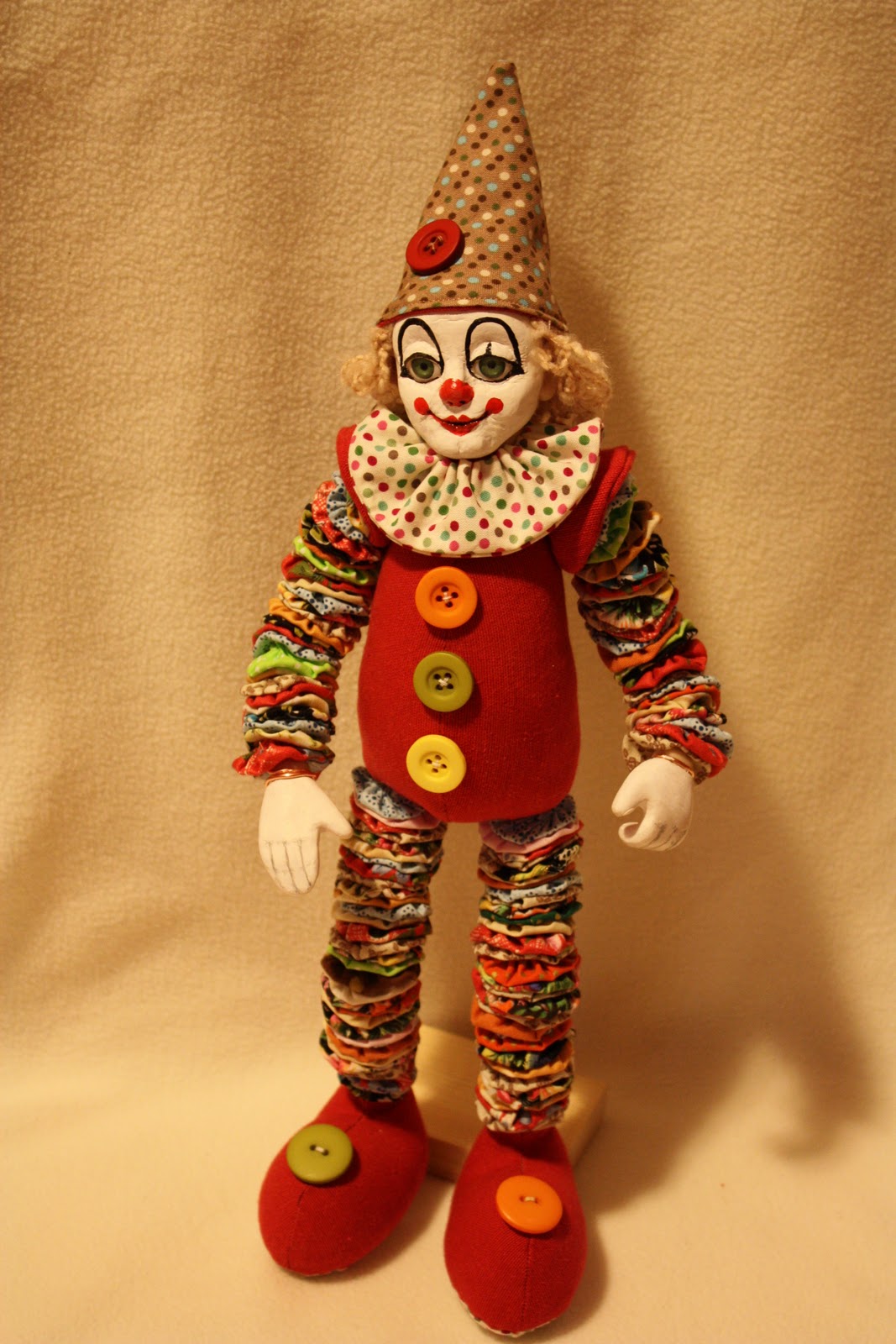 Откопала все имеющиеся у меня обрезки (то, что отсталось от недавно сшитого домового) + соорудила голову и руки для клоуна.
