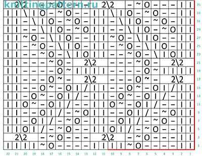 --\-- - снять 2 петли на дополнительную спицу перед работой, 2 изнаночные, затем провязать изнаночными петли с дополнительной спицы