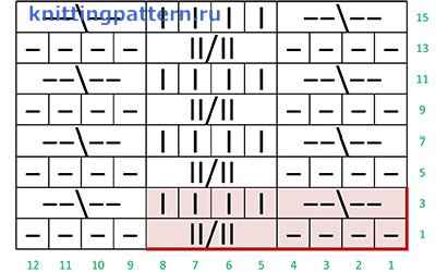 3\3 - 3 петли снять на дополнительную спицу перед работой, 3 лицевые, провязать лицевыми петли с дополнительной спицы