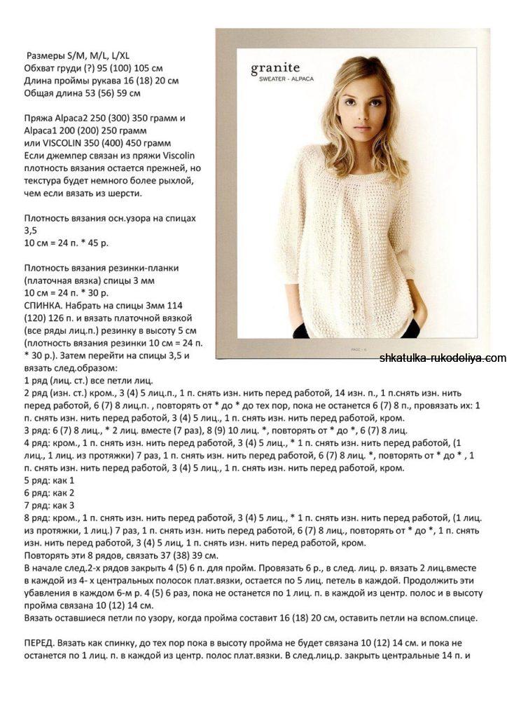 Очаровательный, нежный, изысканный и даже грациозный пуловер вы можете связать спицами самостоятельно. Изюминка этой модели в ажурных полосах, которые необыкновенно стройнят фигуру