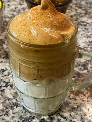 Рецепт вдохновлен корейской кухней. "Дальгона" - популярная в Корее сладость, эдакий карамельный кружочек на палочке. Взбитый кофе для напитка похож по текстуре на пенящуюся карамель для корейского десерта, отсюда и название.
