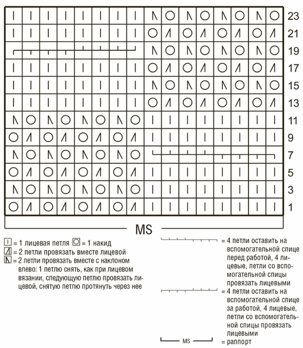 Если осталось еще 22 петли, рукав вязать далее по схеме узора.