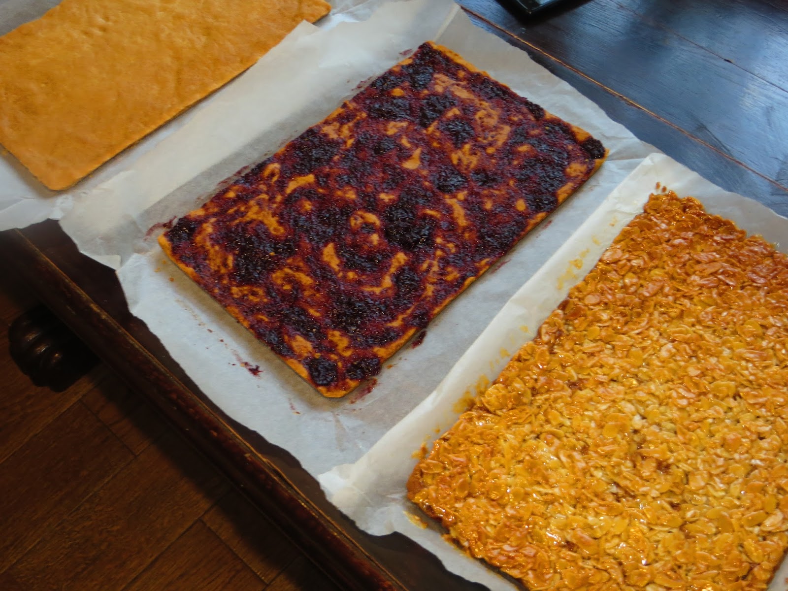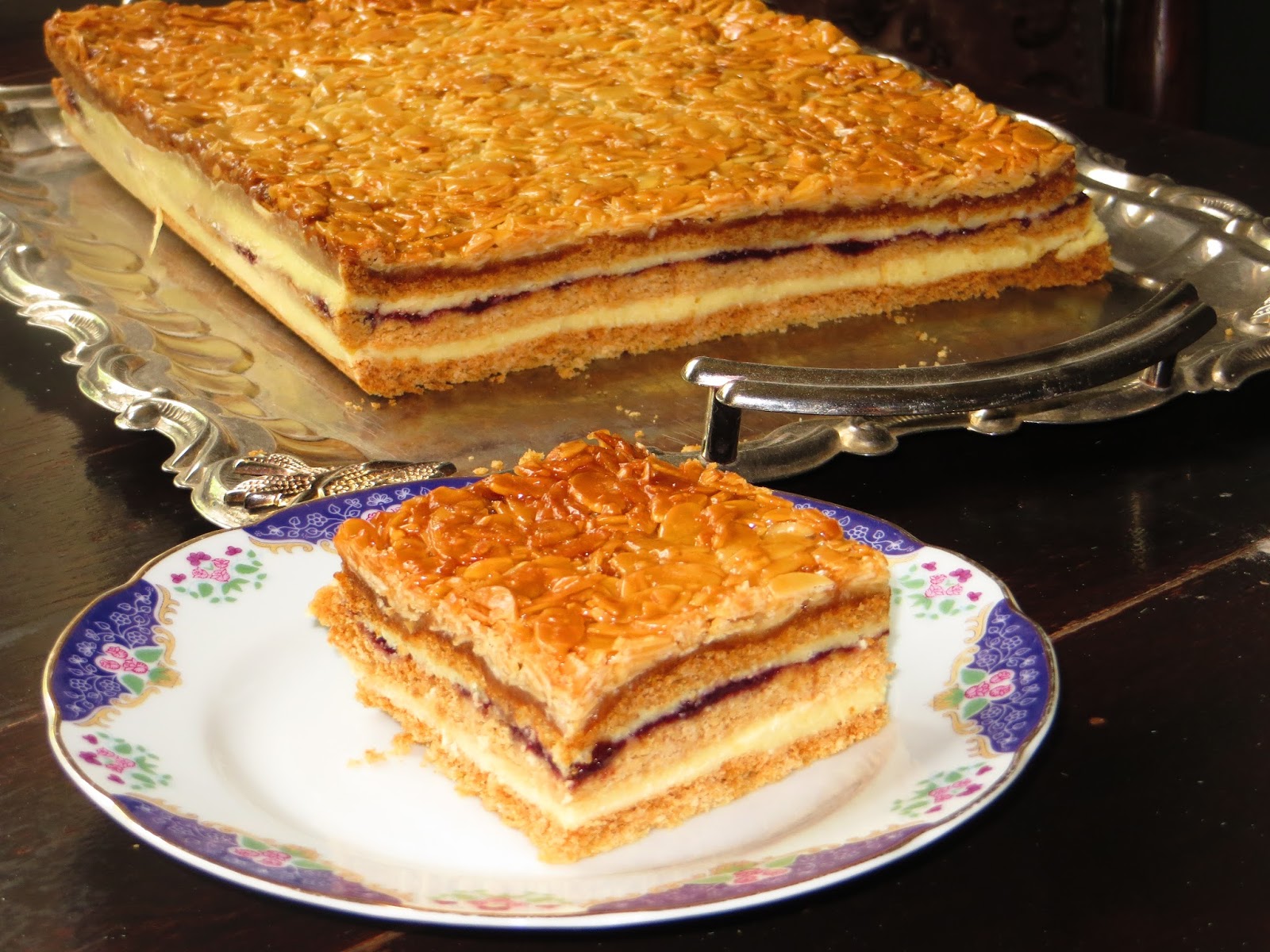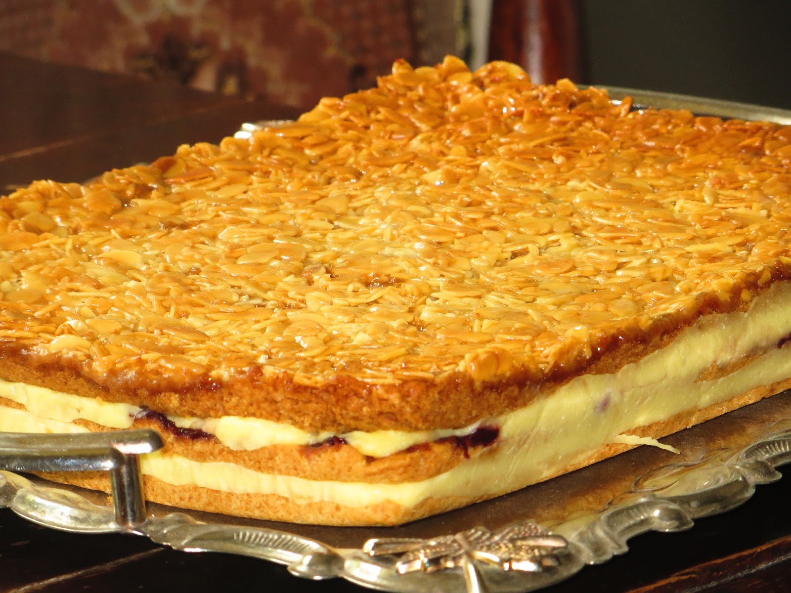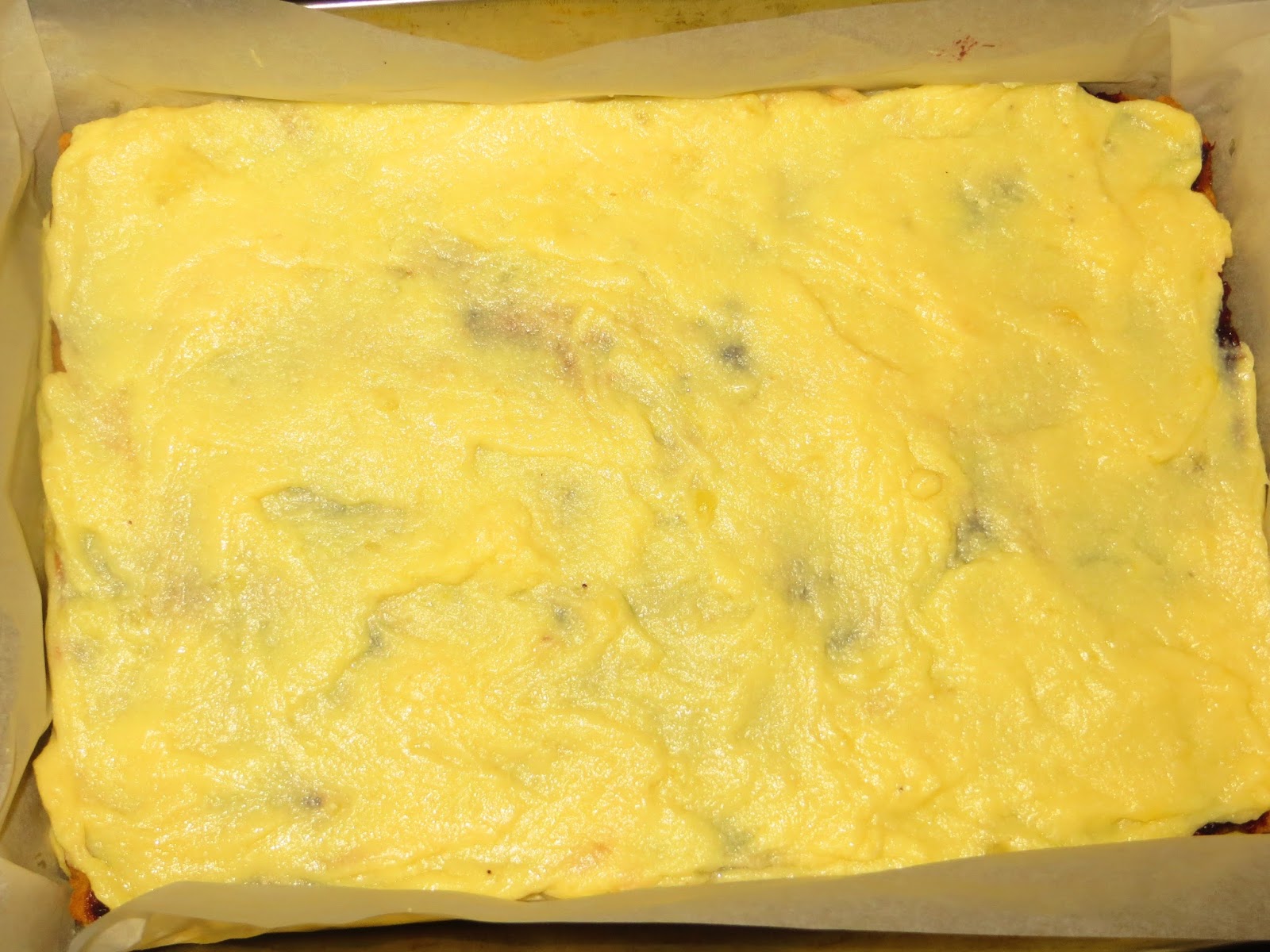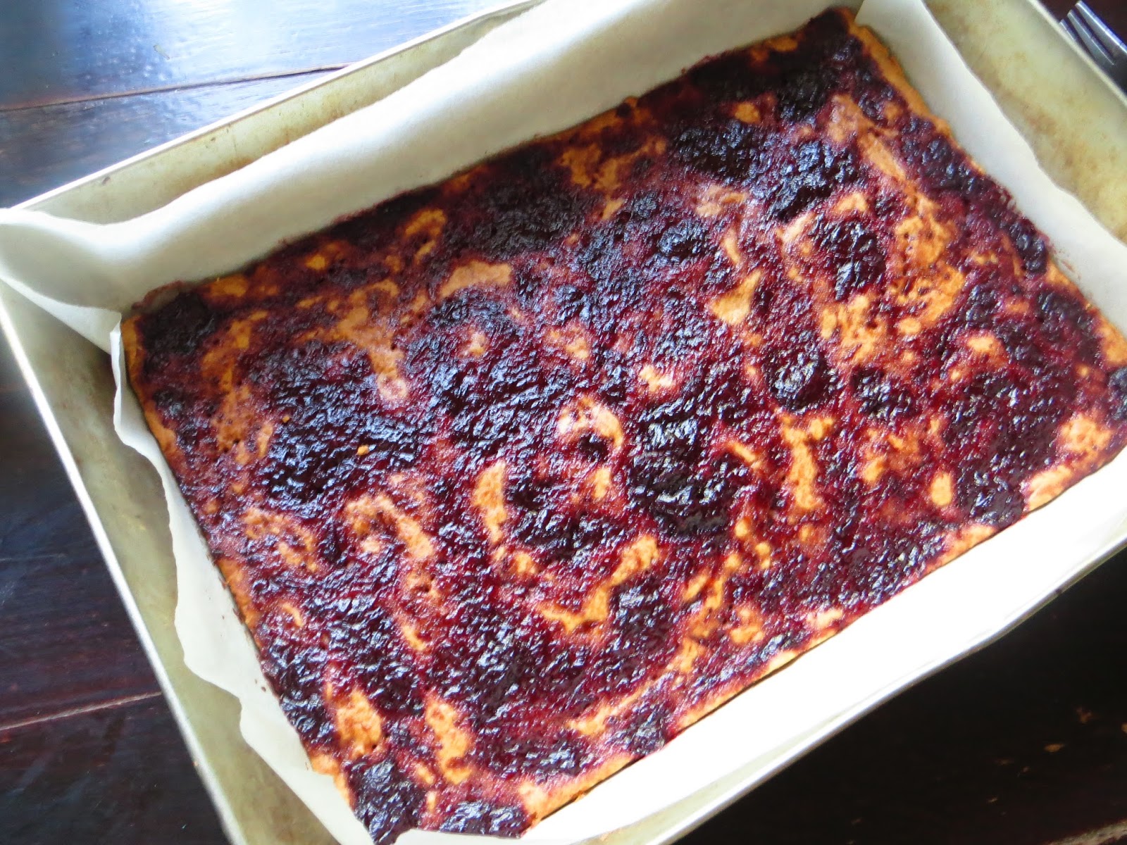 2 смазать вишневым вареньеми выпекать ок. 35 мин. При 175 градусах.(здесь от себя хочу вставить,что не стоит выпекать с вареньем,в итоге как карамель получается.Лучше испечь просто корж и затем горячим смазать вареньем)