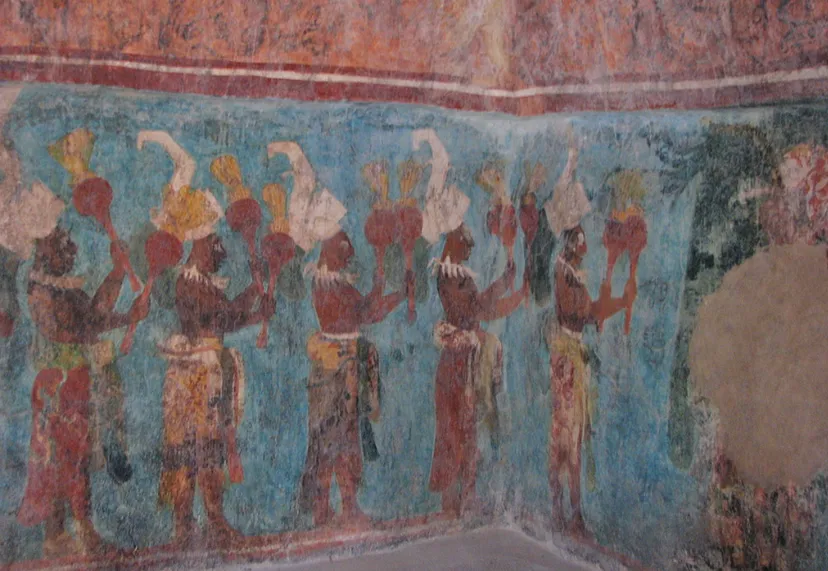 Майяская элита собиралась в тускло освещённых залах храмов, их тела украшали замысловатые одежды и нефритовые украшения.