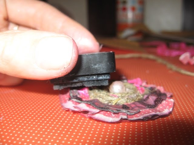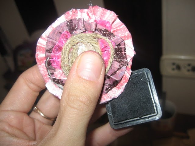 6.Берем веревочки, ленточки, пришиваем их по кругу, там где не хватает цветку