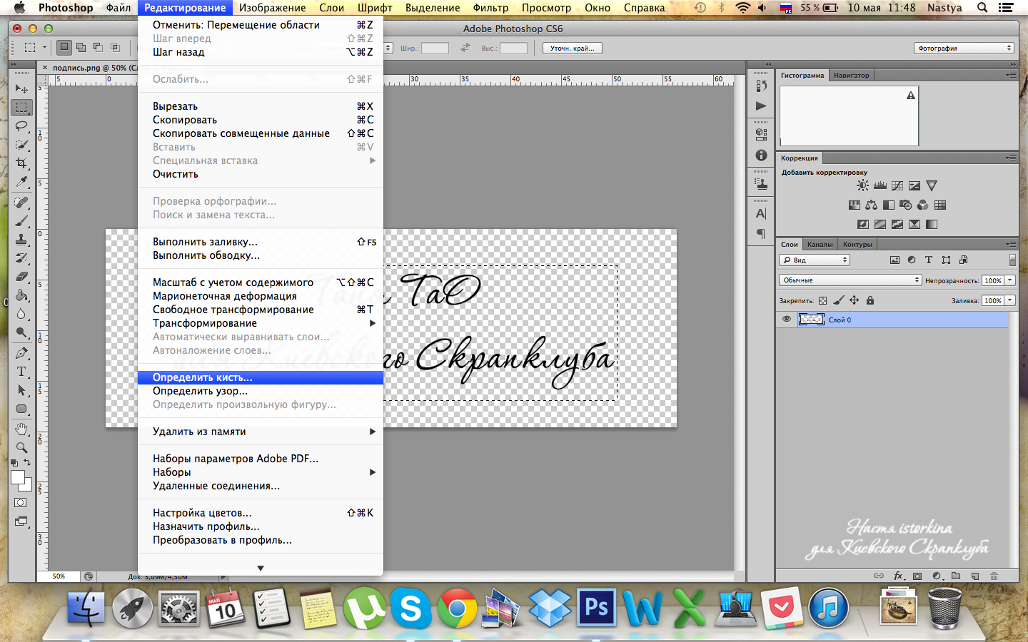 2. Выделяем нашу подпись, и нажимаем "Редактирование - Определить кисть".
