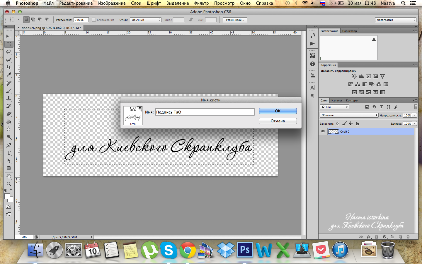 5. В появившемся окошке мы видим нашу кисть с подписью.