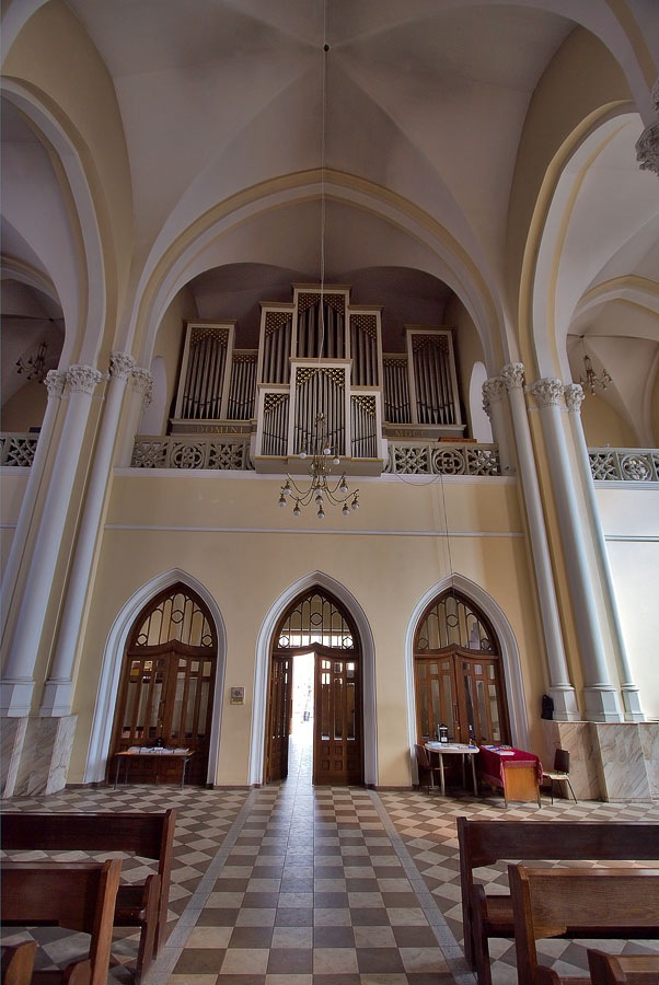 За первой стрельчатой аркой потолка, между первой парой полуколонн, над помещением нартекса находятся хоры. Со времён Контрреформации, то есть с середины XVI века, хоры располагаются в задней части нефа, таким же образом расположены хоры и в Кафедральном соборе Непорочного Зачатия Пресвятой Девы Марии. По первоначальному проекту хоры должны были вмещать 50 человек певчих, но кроме самого хора на хорах был установлен орган.