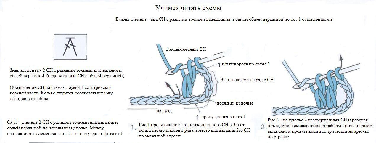 Снова петля подъема и ряд из СБН, но обязательно вяжем их за заднюю часть петли