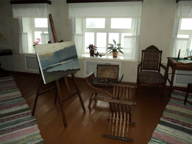 Комната Левитана и Алексея Степанова в плёсском доме с этюдником и мольбертом.